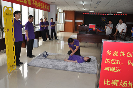 淄博市第四人民医院以全市卫生系统急救技能大赛为契机,在全院范围内开展急救技能大练兵、大比武活动,采取阶段考核、层层选拔的方式,使每一名医护人员都得到了一次正规的急救培训机会,都能正确、扎实地掌握心肺复苏、气管插管技术。通过大练兵大比武活动,急救技术在全院得到了推广,整体医疗急救水平得到了显著提升,医护人员的技能素质获得了极大的提高,真正的将急救技术由点带面,实现了全员动员、全员培训、全员参赛、全面提升。