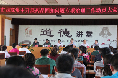 9月25日下午,淄博市第四人民医院召开集中开展药品回扣问题专项治理工作动员大会。市卫生局副书记、调研员宋晓东、纪委监察室主任胡国平应邀出席会议。全院业务人员和职能科室中层干部近200人参加了会议。