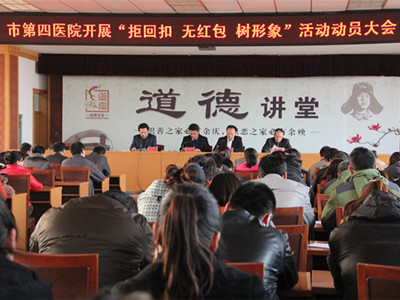 11月20日下午,市第四医院召开拒回扣、无红包、树形象活动动员大会。院长毛立亭主持会议。全院干部职工参加了会议。