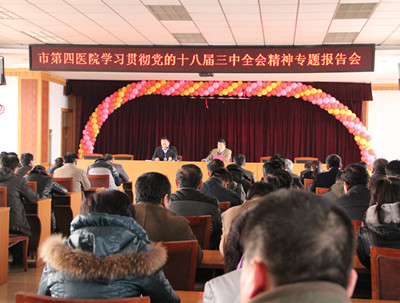 2月8日下午,淄博市第四医院组织召开学习贯彻党的十八届三中全会精神专题报告会,全体党员、中层干部参加了报告会。