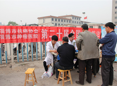 2014年4月15日——21日是第二十届全国肿瘤防治宣传周,今年的活动主题是“科学抗癌,关爱生命”。4月15日,淄博市抗癌协会联合淄博市第四医院、淄博市肿瘤医院组织肿瘤专家到山泉村集市进行义诊活动,普及肿瘤防治知识。前来咨询的群众络绎不绝,此次义诊共发放肿瘤科普知识宣传手册100余册,义诊80余人次。通过义诊活动,向人民群众宣传科学规范的防治途径,传播科学理念、普及防癌抗癌知识。