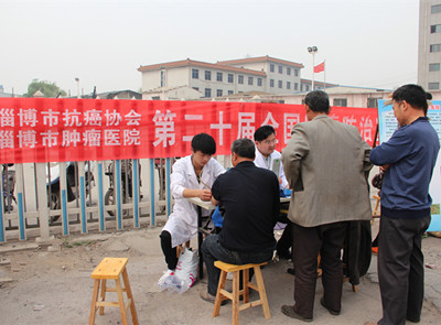 2014年4月15日——21日是第二十届全国肿瘤防治宣传周,今年的活动主题是“科学抗癌,关爱生命”。4月15日,淄博市抗癌协会联合淄博市第四医院、淄博市肿瘤医院组织肿瘤专家到山泉村集市进行义诊活动,普及肿瘤防治知识。前来咨询的群众络绎不绝,此次义诊共发放肿瘤科普知识宣传手册100余册,义诊80余人次。通过义诊活动,向人民群众宣传科学规范的防治途径,传播科学理念、普及防癌抗癌知识。
