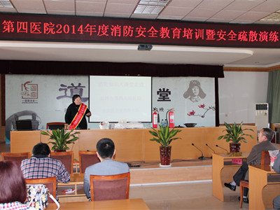 4月28日下午,淄博市第四人民医院集中组织进行了消防技能教育培训和疏散灭火演练。党总支书记路慎国主持培训活动,院领导班子成员及全院干部职工参加了培训和演练。此次培训暨演练特邀消防大妈孙晓云带领的消防宣教队来院授课指导。