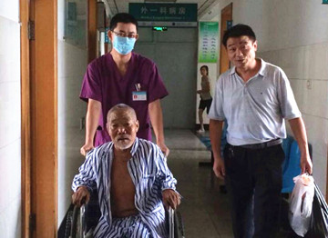 经过医护人员积极的治疗、精心的照顾、贴心的护理,老人病情逐渐恢复了稳定,于8月5日出院。经打听,老人是临沂市平邑县人,只有孤身一人。考虑到病人的特殊性,医院为其减免了全部费用。在老人住院期间,医护人员认真履行“以人为本,护理先行”的服务宗旨,以一颗关爱之心、温暖之心、细致之心践行了白衣天使的神圣职责。