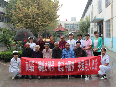 按照省、市卫计委“服务百姓健康”行动的活动安排,在第22个老年节到来前夕,淄博市第四人民医院青年文明号内二科护理单元的医护人员来到张店区夕阳红敬老院,为入住老人进行健康查体,提前送去了节日的祝福。