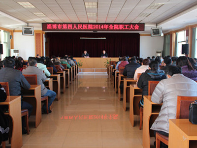 12月31日下午,淄博市第四人民医院召开2014年工作总结大会,总结2014年各项工作完成情况,对2015年工作进行安排部署。党总支书记路慎国主持会议,院长毛立亭作总结报告,全院干部职工参加了大会。