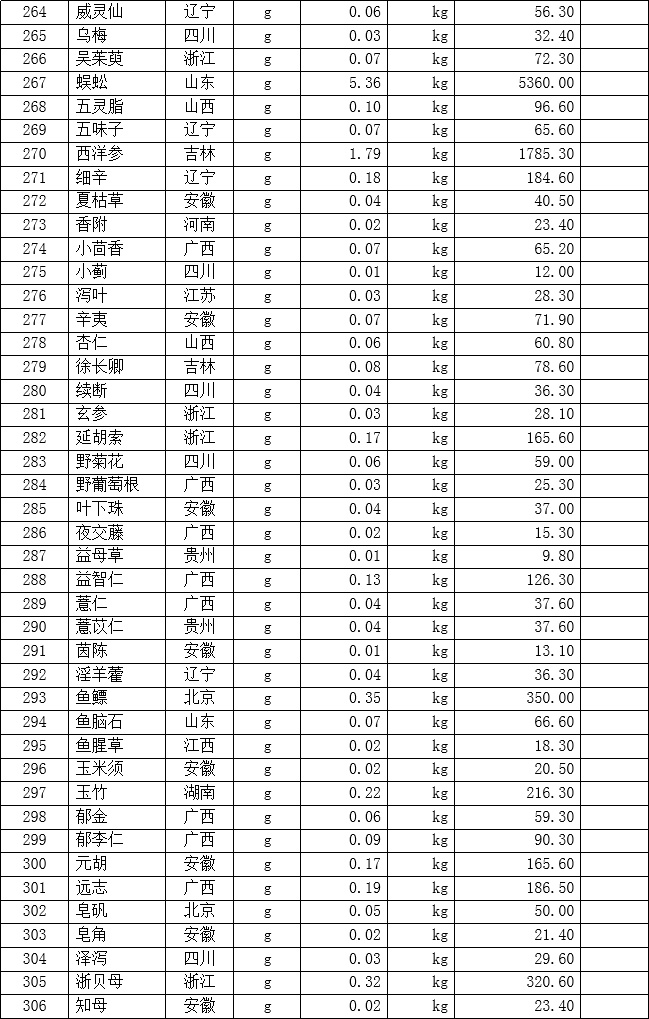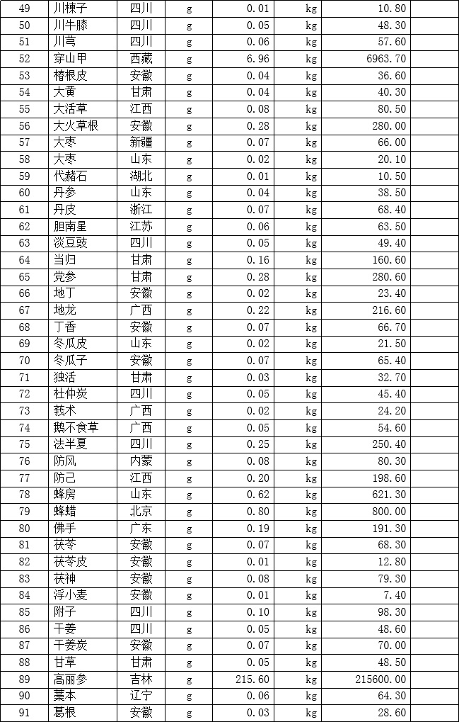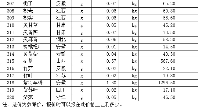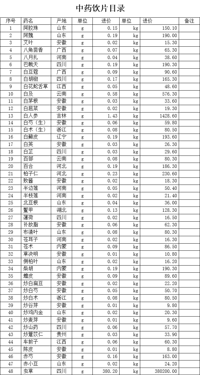 5、中药饮片报价单,包括电子文档和纸质材料;