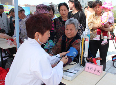 5月16日上午,“社区体检计划”走进了南定镇马庄村。活动还未正式开始,咨询台前已围满了社区居民。来自淄博市第四人民医院传染科、内科、骨科、腰腿疼科的专家为居民进行测血压、听心肺、疾病咨询、健康知识宣教等服务。