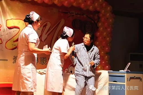 风趣的装扮,幽默的举止,演员一出场,就引来观众阵阵惊呼和笑声,由肿瘤四科表演的别具一格的三句半《四院赞歌》道出了医护人员心中的感恩和喜悦。
