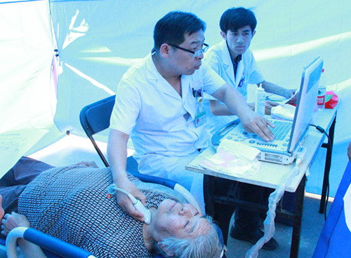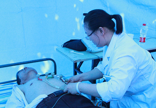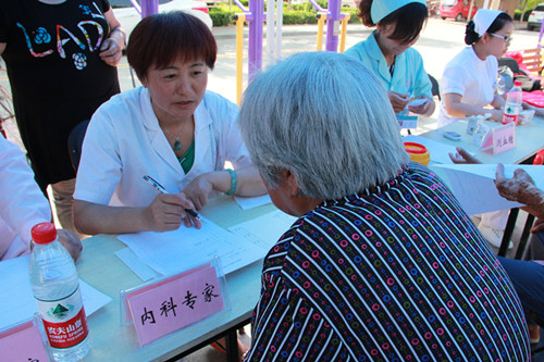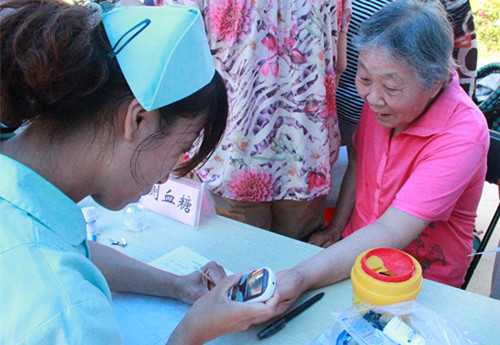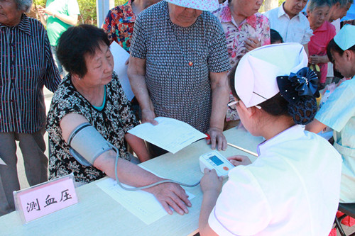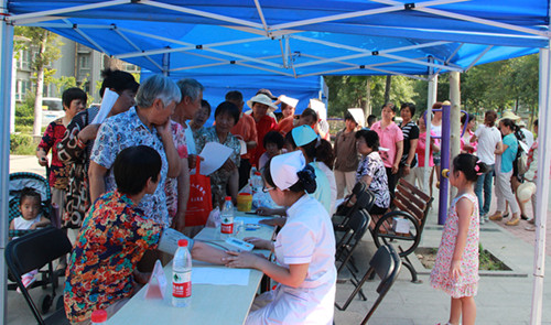 医护人员顶着酷暑高温,认真地为大家量血压、测血糖,做甲状腺结节筛查和心电图检查,受到村民的一致好评。