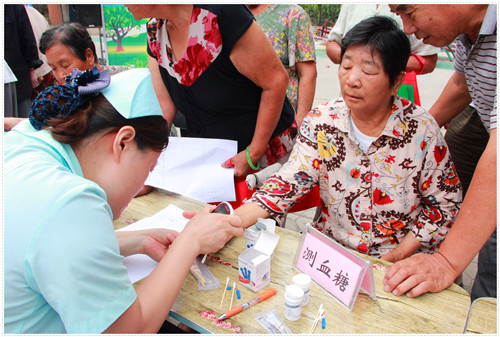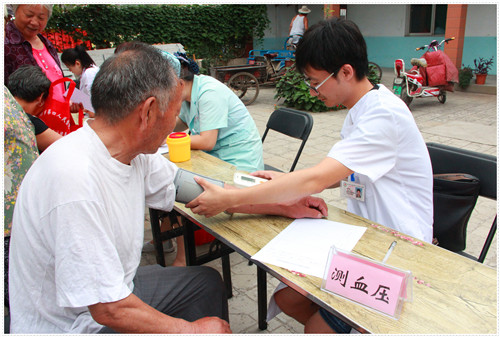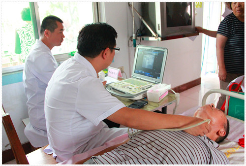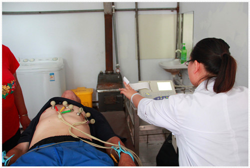医护人员认真地为大家量血压、测血糖,做甲状腺结节筛查和心电图检查。受到村民的一致好评。