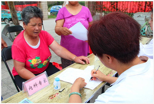 内科专家根据村民的查体状况进行健康宣教和指导。针对现场高血压病人存在服药不规范的现象,内科副主任马乃华为大家讲解了治疗高血压怎样规范用药的科普常识。