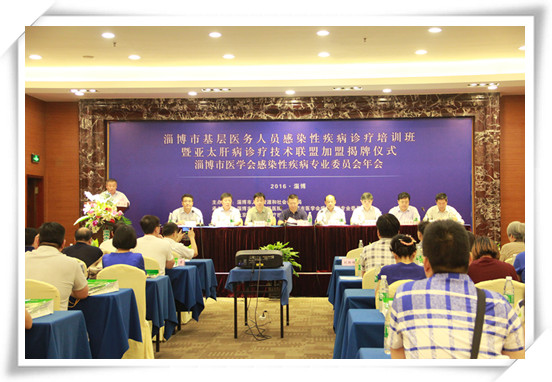 8月27日上午,淄博市基层医务人员感染性疾病诊疗培训班暨亚太肝病诊疗技术联盟加盟揭牌仪式、淄博市医学会感染病学专业委员会年会隆重举行。