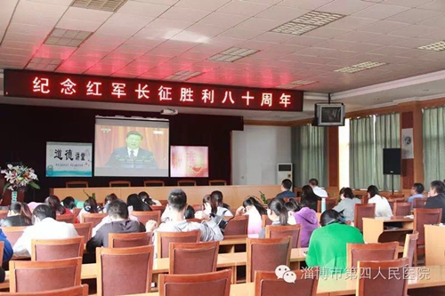 2016年10月21日上午10时,淄博市第四人民医院组织党员干部集体观看纪念红军长征胜利80周年大会直播。