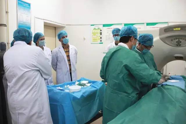 随后,三位外宾来到放射科观摩学习肝癌、肺癌微波消融手术。