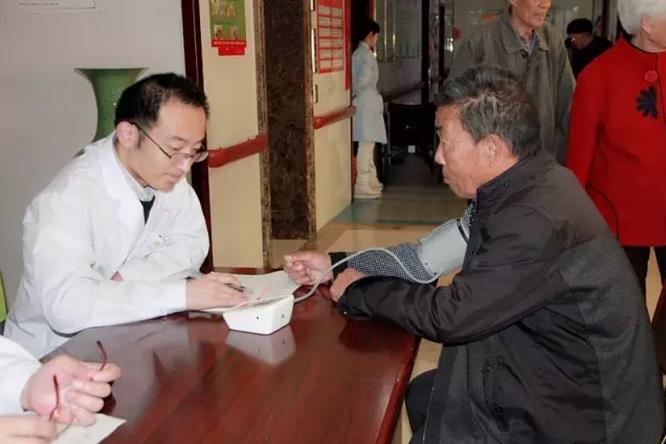 医护人员一早来到敬老院为老人们测血压、做心电图和内科检查。