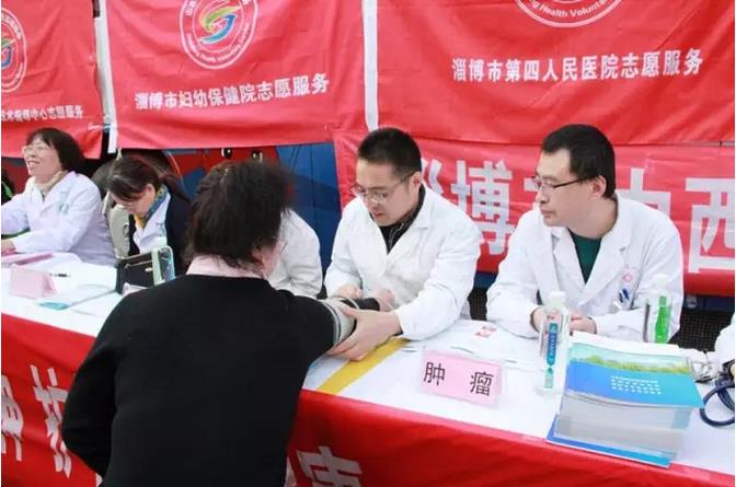 活动现场,淄博市第四人民医院志愿者服务队为群众免费测量血压,对血压偏高的群众,医生当场给予就诊、饮食建议,对其并发症进行相关讲解,让群众了解高血压的危害及防治,提高群众对高血压病的认识。