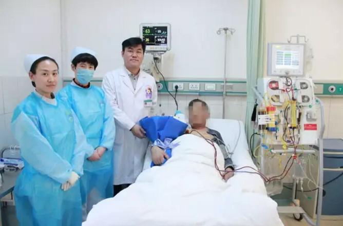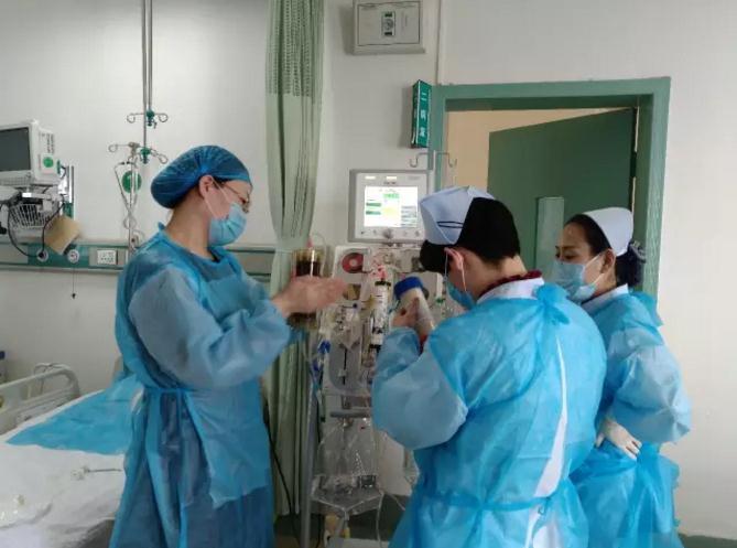 市第四人民医院内科ICU为患者行人工肝治疗,内科医护人员尽职尽责守护在患者床边,观察患者体征状况,并分别为患者送去了鲜花,祝愿患者早日康复!