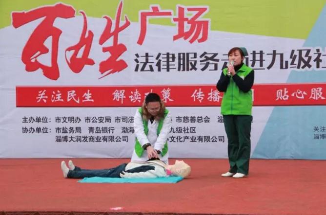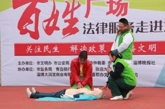 3月25日上午,淄博市第四人民医院的医护志愿者走进九级村参加淄博晚报组织的“百姓广场”公益活动,为社区居民义诊普及急救常识。