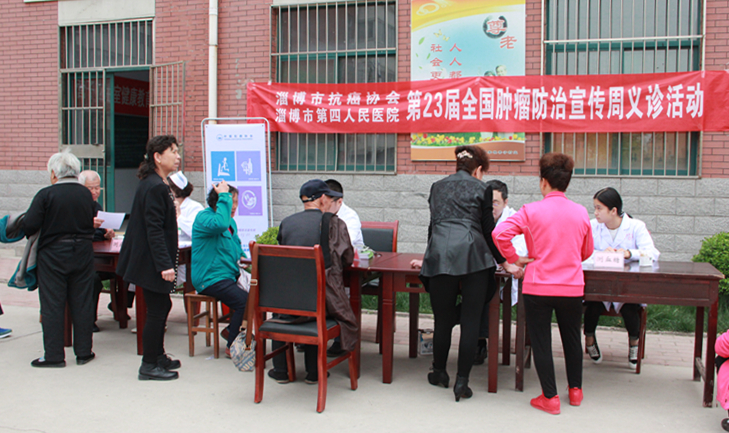 4月15-21日是我国的第23届“全国肿瘤防治宣传周”,今年的主题为“科学抗癌,关爱生命”。4月19日上午,由淄博市抗癌协会、淄博市第四人民医院举办的肿瘤防治宣传周义诊活动走进傅家镇营子村福瑞园社区。