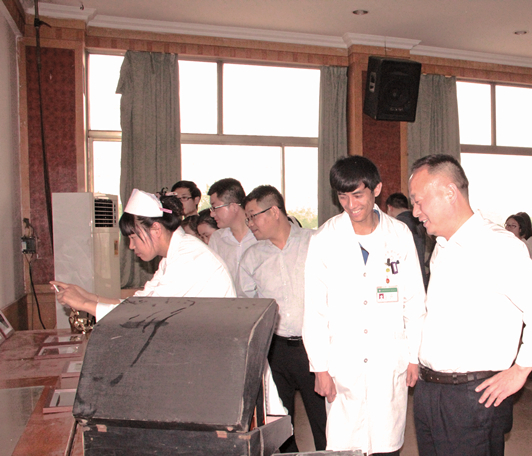 在嘹亮的团歌《五月的花海》声中,党总支路慎国书记、工会徐东主席亲临会场,和大家一同来到医院历史陈设区,观看医院历史照片、工作实物,徐东主席亲自对医院历史进行讲解,带领大家一同追忆医院曾经的年华,要求大家刻苦学习、勇于励志、善于思考、积极钻研、敢于担当。