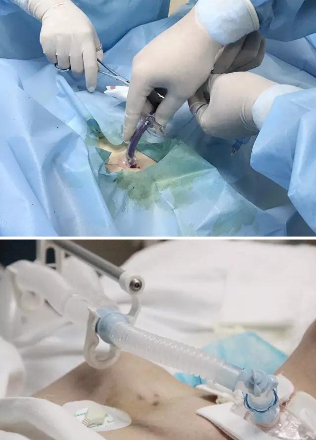患者ARDS、重度心衰,入院时昏迷,呼吸衰竭不能维持,转入后医师根据病情需要立即予以气管插管呼吸机辅助呼吸等治疗,患者病情缓解,生命体征稳定,但综合分析患者病情和治疗需要,患者需要长期携带人工气道,气管切开指征明确,最终医师给予实施了微创气管切开术,并首次将纤支镜用于微创气切引导,手术在全程动态可视下进行,大大缩短了手术时间,减少了并发症和手术风险。