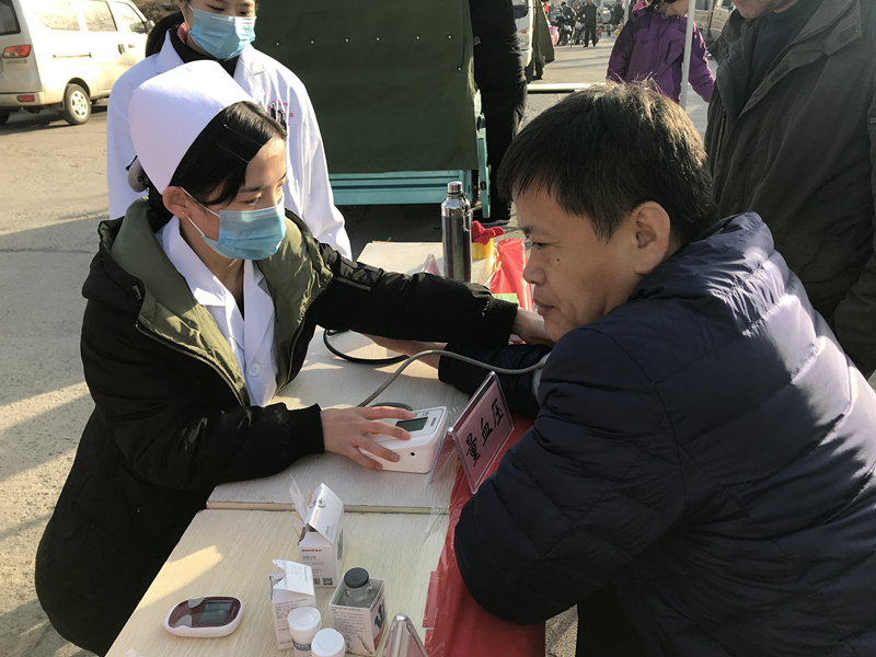 11月22日上午,淄博市第四人民医院医护人员来到南定镇马庄村,开展“名医赶大集”义诊活动。活动现场,医护人员为村民量血压、测血糖,提供健康指导等服务,同时发放健康科普手册,指导群众改变不良生活习惯,倡导健康生活方式。