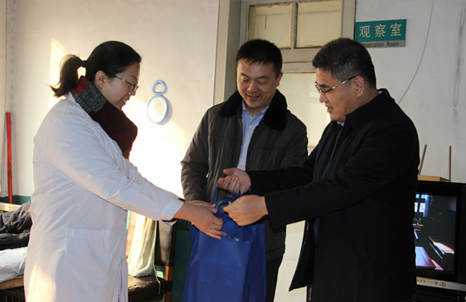 2017年12月13日,淄博市第四人民医院院长毛立亭带领相关科室负责人到医院派驻“第一村医”的两所村卫生室,慰问两名“第一村医”,并对两所村卫生室的医疗卫生状况进行了深入了解。