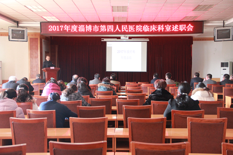 为总结2017年度医院临床科室取得的成绩,查找工作中存在的不足,更好地为2018年工作打下坚实的基础,2月5日下午,淄博市第四人民医院举行临床科室述职报告会,院领导和部分职能科室负责人参加会议。