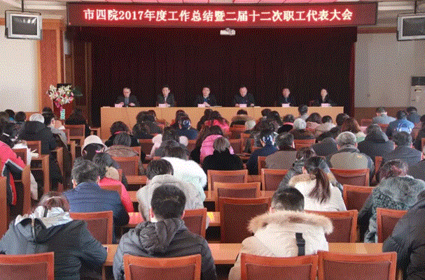 2018年2月6日下午,淄博市第四人民医院召开2017年度工作总结暨二届十二次职工代表大会,总结2017年各项工作完成情况,对2018年工作进行安排部署。工会主席徐东主持会议,全体中层干部、职工代表及入选青年人才工程人员参加了大会。