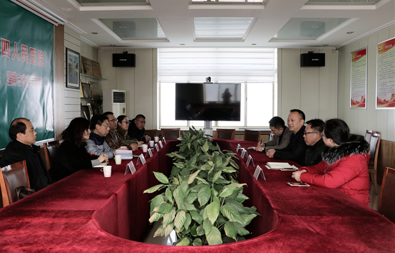 转眼间,淄博市第四人民医院派驻周村区南郊镇常旺村的第一村医袁芳已驻村两个多月,为了增进交流,助力第一村医更好地做好各项工作,2018年2月7日上午,周村区卫计局、南郊镇医院、常旺村村委的领导来到了第一村医袁芳的娘家——淄博市第四人民医院。
