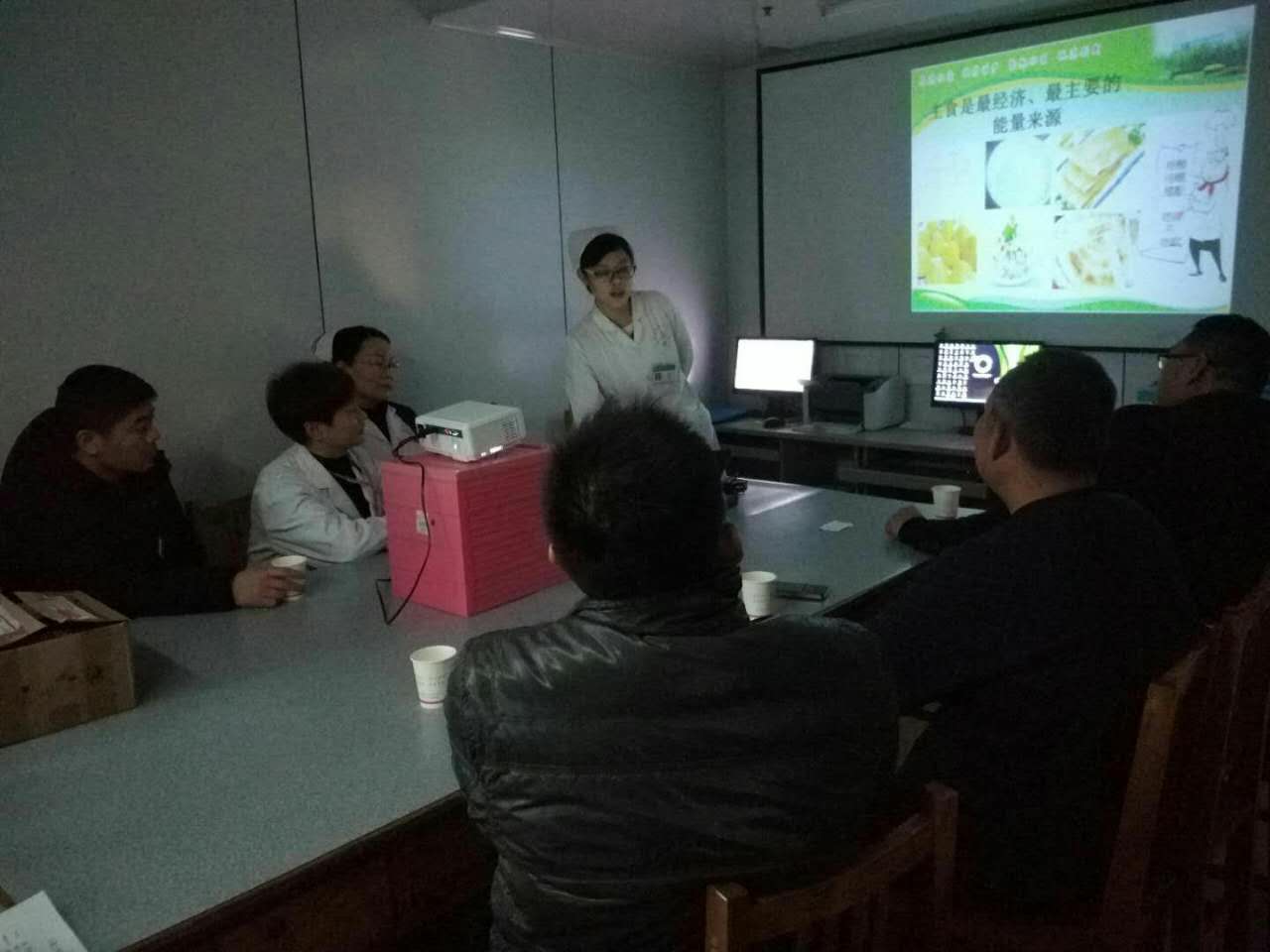 糖尿病专科护士内科副护士长董珊制作了精美的PPT,图文并茂地详细制定了糖尿病病人食谱,包括节日期间的饮食搭配、烹调方式以及不同的热量比较,目的是教会大家通过合理健康的饮食,培养良好的生活习惯,在既能品尝到舌尖美味的同时,又消除了饮食不合理带来血糖升高的隐患,让糖尿病病人不断提高生活质量,控制糖尿病发展,并强调了定期复查的必要性。