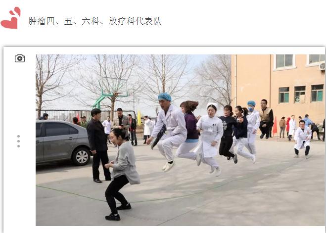 由肿瘤科、感染科、内科、外科、骨科、医技、门诊、后勤等分成的六组参赛队伍进行的跳长绳比赛是这次运动会的集体项目,哨声一响,队员们个个斗志昂扬、团结一心,鼓足了劲。场下啦啦队井然有序地站在两旁,加油声、鼓掌声、欢笑声此起彼伏。整个赛场既紧张又热烈,充分展现出了员工们团结协作、顽强拼搏的精神,进一步增强了全院干部职工的凝聚力和向心力。