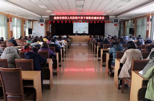 为全面落实从严治党主体责任,切实转变干部队伍作风,提高全体党员干部廉洁自律意识和防范能力,深入推进党风廉政建设及廉政风险防控工作, 按照上级党委、纪委要求,3月8日下午,淄博市第四人民医院党总支书记路慎国同全院中层干部进行集体廉政谈话,院长毛立亭主持。