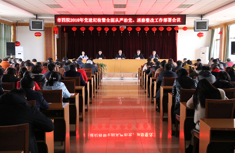 2018年3月15日下午,淄博市第四人民医院召开2018年党建纪检暨全面从严治党、巡察整改工作部署会。院长、党总支副书记毛立亭主持会议。全体党员干部参加会议。