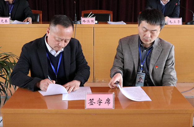 党总支书记路慎国分别与各党支部书记签订《党建目标责任书》、与科室代表签订《党风廉政建设及行风建设目标责任书》。