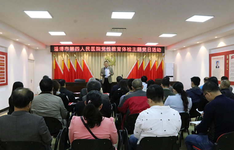 2018年4月24日下午,淄博市第四人民医院组织全体党员到张店区和平街道办事处组织生活规范化活动中心进行党性教育体检,87名党员参加了一次严肃、具有教育实践意义的主题党日活动。