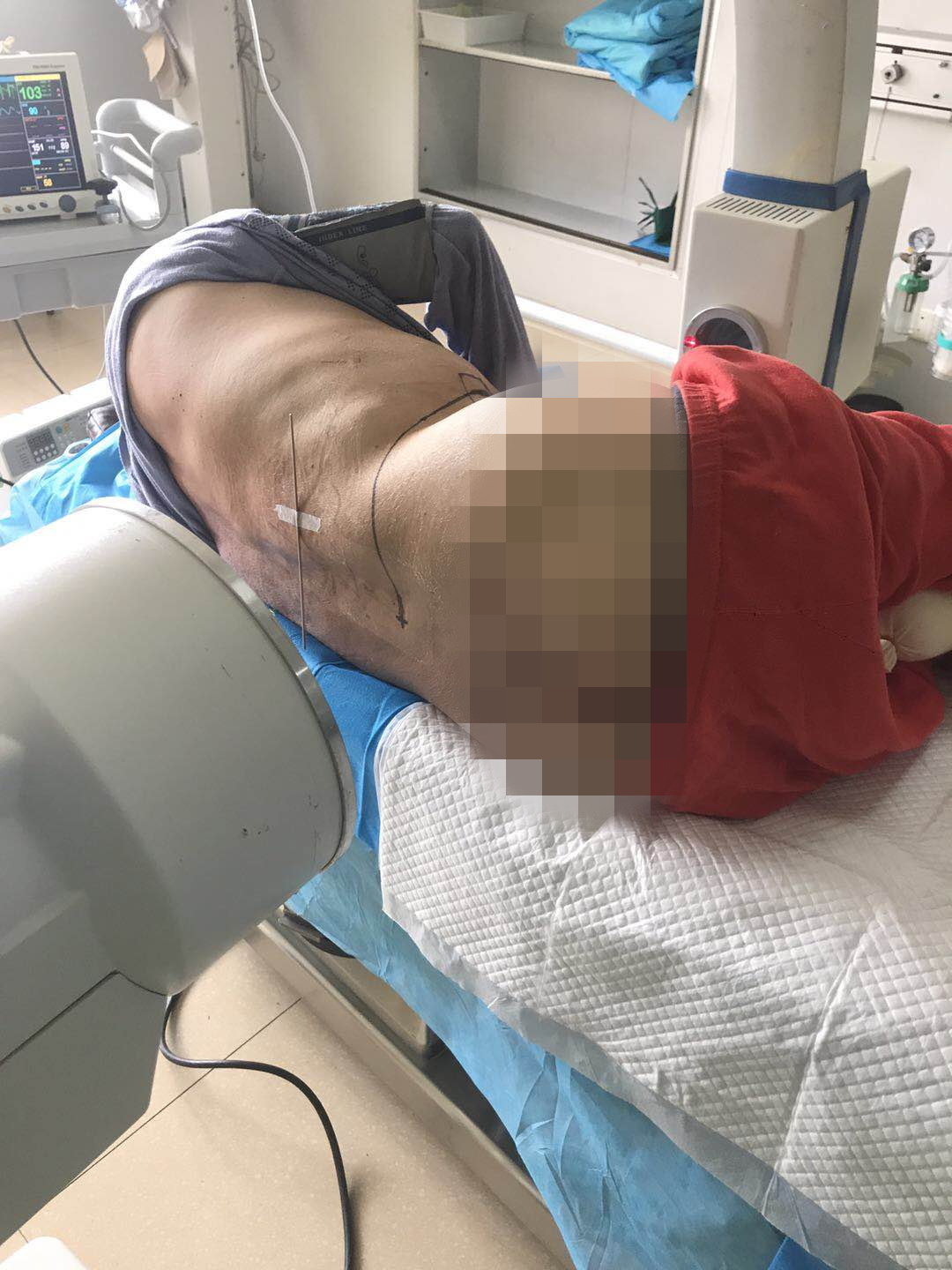 该患者为晚期肺癌多发转移侵及胸椎、腰椎、骶骨、髂骨,腰部伴双下肢剧烈疼痛,彻夜难眠,应用多种镇痛药和镇痛方法均效果不佳,患者生活质量非常差。经医院疼痛科主任、副主任医师穆民等多名医师会诊讨论、与患者及家属协商后,决定为患者实施鞘内吗啡泵植入术。仅仅给予蛛网膜下腔1mg 吗啡/天,病人疼痛就得到明显缓解。术后患者无明显不适,可以正常饮食和睡眠,有效减轻了患者的疼痛之苦,提高了生存质量,为肿瘤治疗赢得了时间。