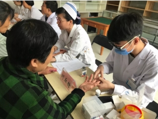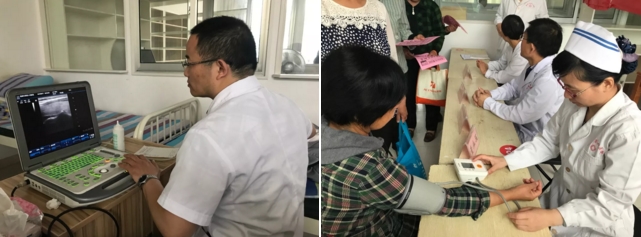 此次义诊项目包括心电图、甲状腺结节筛查、血压、血糖检测。居民们一大早就来到卫生室排队等候。内科专家在现场为前来咨询的村民诊治疾病、答疑解惑,并普及肿瘤早筛早诊早治常识、倡导健康生活方式。