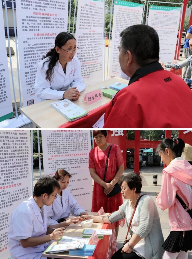 内科、肿瘤科、感染科、放射科的专家们为前来咨询的市民朋友免费量血压、诊治疾病、答疑解惑。