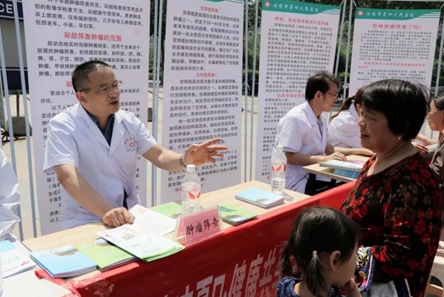 近来年,淄博市第四人民医院积极组织参与多种形式的义诊活动,旨在通过专家义诊、科普讲座等形式传播科学防癌理念、倡导健康生活方式、普及抗癌知识、增强人民群众积极参与肿瘤早诊早治的意识,动员全社会共同参与防癌的公益事业,下一步淄博市第四人民医院将有计划的组织“社区体检计划”、精准回访等多种形式的服务活动,实现市委市政府提出的“打造卫生强市、建设健康淄博、绝不让一个人在追求健康的道路上掉队”的目标,这也是淄博市第四人民医院作为淄博市肿瘤医院、淄博市传染病医院义不容辞的社会责任。