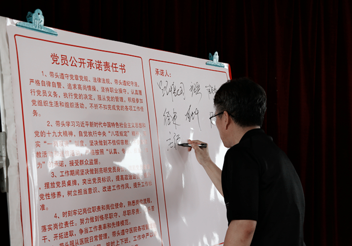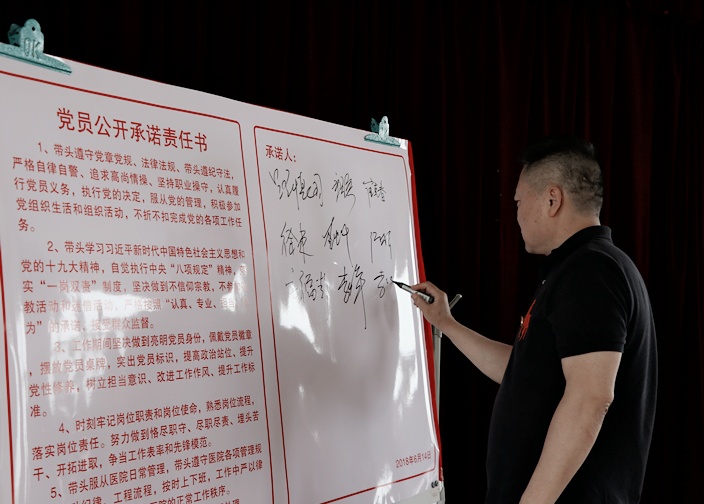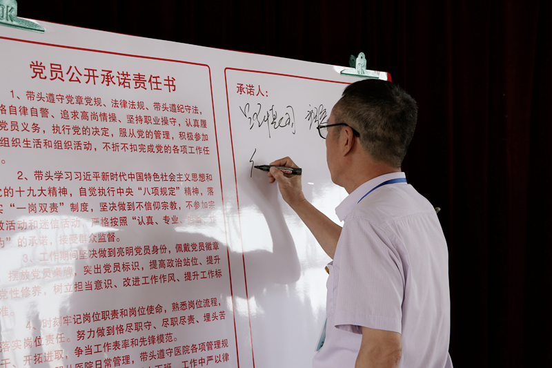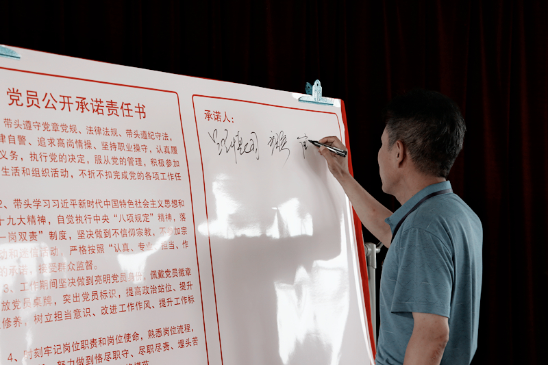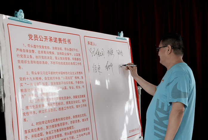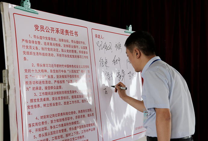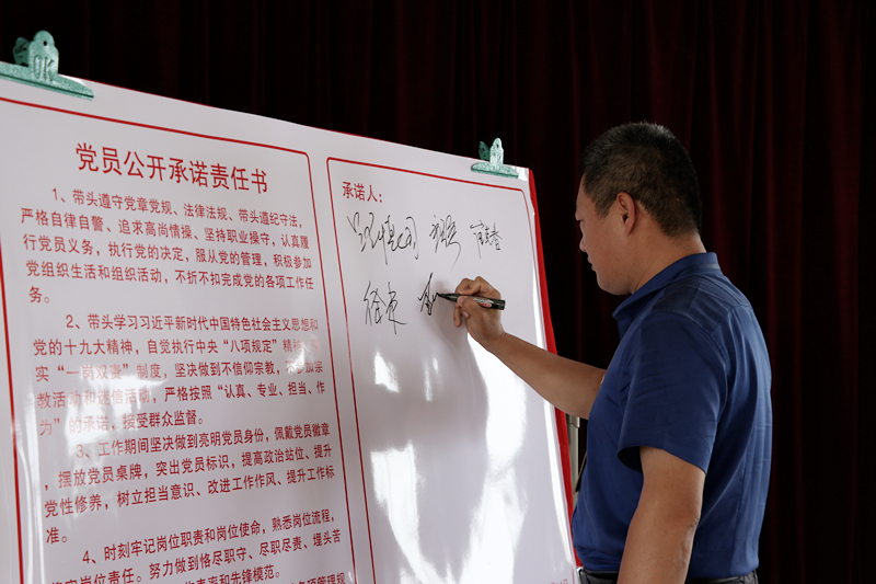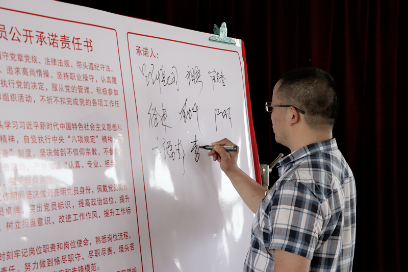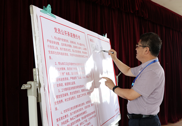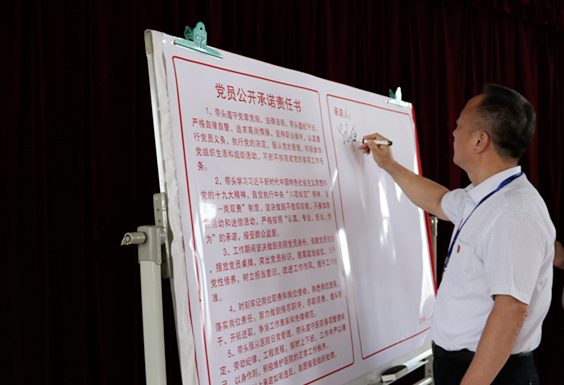 党总支成员、各党支部书记共同签署并宣读了《党员公开承诺责任书》,党员代表做表态发言。