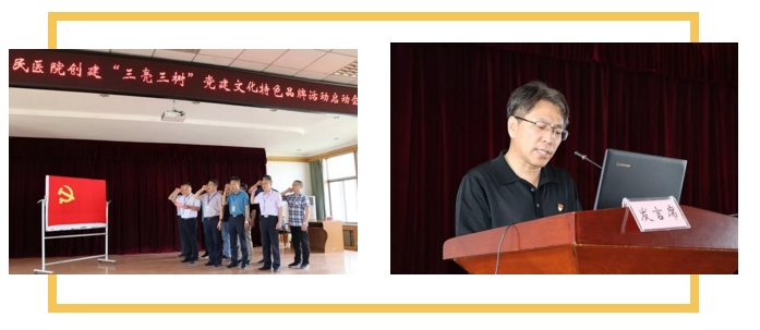 党总支书记路慎国宣读了医院《创建“三亮三树”党建文化特色品牌实施方案》,对创建活动进行了动员和部署。路慎国强调,“三亮三树”党建文化特色品牌,是结合医院“大学习、大调研、大改进”对党建工作调研情况,在广泛听取基层党支部和党员干部意见建议基础上,确定的党建文化特色品牌。要求全体党员要牢固树立“四个意识”,坚决做到“四个服从”,以创建“三亮三树”党建文化特色品牌为目标,细化党建工作制度落实,发挥党总支核心、支部引领、党员先锋作用,为打造有创新、有活力、有内涵、有关爱、有人文情怀的医院提供组织保障。
