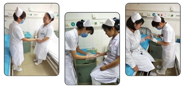 体验还没开始,紧张和恐惧就已涌上我的心头,满脑子在想会不会很疼,会有多疼。眼看着同事开始给我消毒手指,我不由自主地想躲,是真的特别害怕。当血糖笔刺入我的指肤时,我甚至不敢再看,伴随着手指间的一阵刺痛,完成了测血糖过程中最难过的一大关。接着一部分护士又体验了不用血糖笔,针头直接穿刺检测的互换感受,最后新入院的实习生护士也参与了本次体验,希望通过这次互换体验,让她们能够在正式踏入岗位之前切身体会到患者的感受。体验结束后大家根据不同患者的皮肤厚薄度总结出了最佳穿刺档位,以求患者检测时,最大程度降低疼痛度。