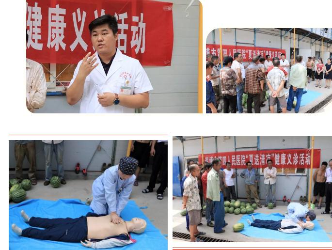 淄博市第四人民医院医护人员在现场为建筑工人进行了健康科普讲座,重症医学科副主任孙振杰讲解了如何预防中暑、护士长郭杰现场演示了心肺复苏术等,让农民工学习到丰富的高温防暑应急知识,帮助他们在酷暑中安然度夏。