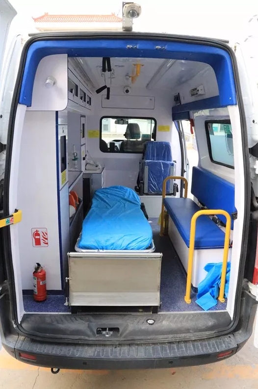 这辆负压监护型救护车设备先进、抢救设施齐全,车内配有急救转运呼吸机、心电监护仪、除颤仪、便携式心电图机、头部固定器、可视喉镜、铲式担架和车内负压装置等一系列先进的院前急救医疗设备。此车除具有监护救护功能外,负压功能是它的最大亮点,即利用技术手段,使车内气压低于外界大气压,空气在自由流动时只能由车外流向车内,而且负压还能将车内的空气进行无害化处理后排出,避免更多的人感染,在救治和转运传染病等特殊疾病时可以最大限度地减少医务人员交叉感染的机率。同时根据院前急救转运途中抢救工作需要,对救护车内空间进行了科学合理的设计,使车载急救用品取放、配药注射、监护抢救等工作更加方便快捷。针对车内设备及担架的使用,急诊科进行了全员培训,做到人人熟练掌握基本急救仪器设备及新型担架的使用。