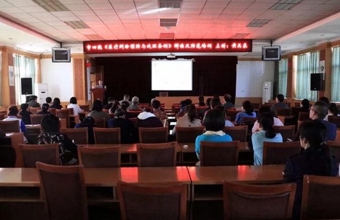 培训中,黄其来副院长介绍了条例出台的背景及新条例5章56条内容,分别从医疗纠纷的新定义、医疗纠纷预防、医护人员职能职责以及医疗纠纷的处理等方面进行了详细的解读和释疑。对条例更新的几大亮点进行了着重分析,同时结合医疗界近期发生的典型纠纷做了剖析,以案释法,强调医务人员要加强职业道德、精进业务、善于沟通、坚守原则,才能做好医疗纠纷的预防和处理,临床科室等要继续强化18项核心医疗制度的落实。