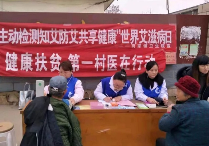 12月1日是第31个“世界艾滋病日”。今年主题是“知晓自己的感染状况”。11月30日,文昌湖区“第一村医”联合商家镇卫生院在冶西村大集进行艾滋病宣传义诊,淄博市第四人民医院“第一村医”徐春华参与此次活动。
