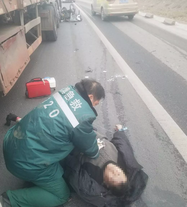 时间就是生命,急诊科主任金传峰、护士刘晓月、司机周强立即赶赴现场。途中,金传峰主任迅速与报警人员取得联系,询问伤情。事故地点偏远,到达现场后,只见一重型大车与一小型三轮车相撞,现场惨烈。三轮车上的女性患者已被碾压致死,男性患者被卷到大车的车底,意识已丧失。金传峰主任冒着危险钻到大车的底部,评估患者伤情,经确认患者无呼吸心跳,立即与护士刘晓月、司机周强把患者搬抬到相对安全的位置,实施心肺复苏术。正值严冬、天寒地冻,医护人员跪在冰冷的地上奋力抢救30分钟,患者仍无生命迹象,心电图仍为直线,遂宣布临床死亡。出于对生命的尊重,医护人员把伤者衣物整理好后返院,整个过程用时1小时。此次急救,充分体现了急诊医护人员对生命的极力挽救以及对逝者的尊重。临近年关,淄博市第四人民医院提醒市民朋友出行要注意安全、谨守交通规则,不疲劳驾驶、不酒后驾车,健康、平安过大年。
