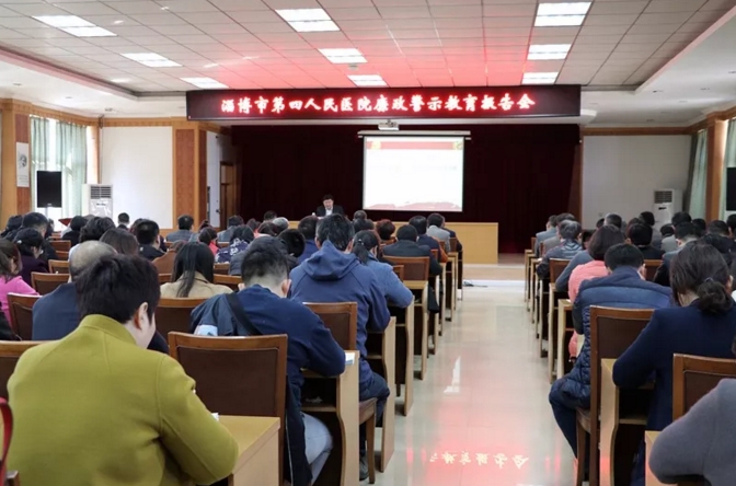 为增强党员干部职工的政治意识和法纪观念,增强拒腐防变、廉洁自律的思想自觉和行为自觉,进一步推动医院党风廉政建设。2019年3月6日下午,淄博市第四人民医院举行廉政警示教育报告会,这是自2018年以来第3次邀请市纪委派驻市卫生健康委纪检组组长陈思海同志作廉政警示教育报告。会议由院长毛立亭同志主持,全体党员干部及重点科室、重点岗位、临床医师178人参加了报告会。